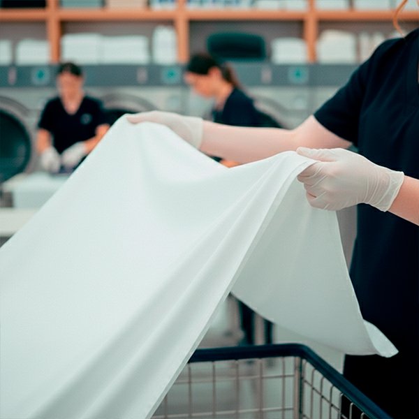 Gestione integrale del ciclo di lavanderia per un hotel di 100 letti. Lavaggio, asciugatura, stiratura e piegatura professionale che garantiscono la massima biancheria, morbidezza e durata di lenzuola e asciugamani, senza danneggiare i tessuti.
